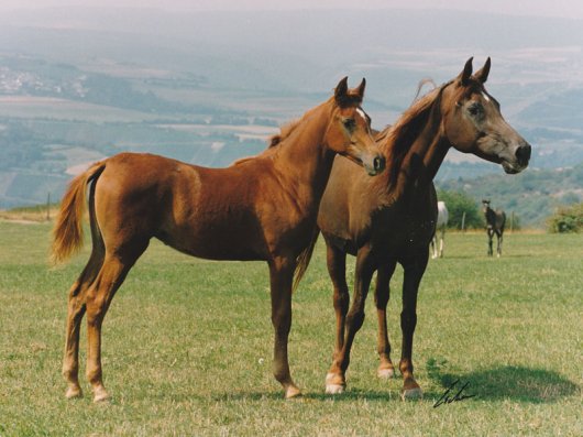 In 1973, four mares arrived at Kauber Platte that were to give the breeding programme an entirely new direction: the Tuhotmos daughters Hania (1971 x Hodhoda by Alaa El Din), Nana (1971 x Nazic by Morafic), Set Husen (1971 x Set Abouhom by Alaa El Din) and Moetazza (1972 x Aziza by Alaa El Din). They became the true foundation mares of Kauber Platte Arabian Stud.